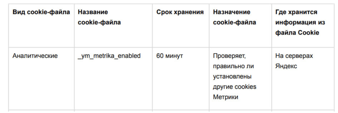 Cookie-файлы третьих сторон устанавливаются согласно информации, указанной в таблице: